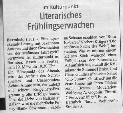 Lesung am 19.3.2010 um 19:30 Uhr:
